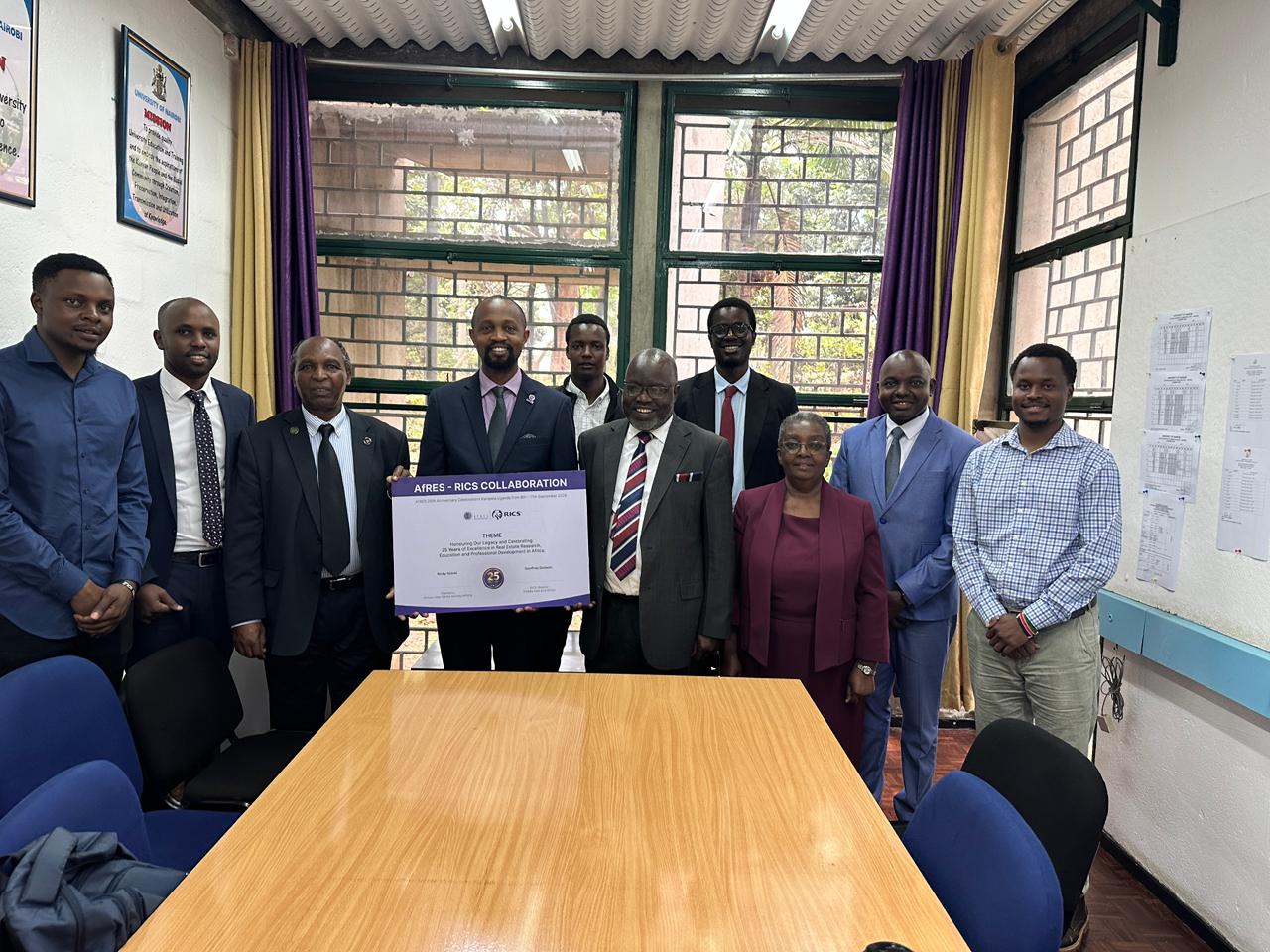 The meeting concluded with a shared commitment to strengthen collaboration between the University of Nairobi, AfRES, and RICS, with all parties expressing enthusiasm for deeper partnerships in professional development, research, and capacity building across the built environment sector.